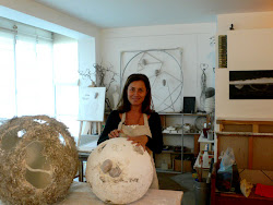Mes sphères cachent une solide armature, résistent au temps mais en portent les stigmates, de fines cicatrices, mais tel un bouclier elles montrent avant tout leur forme , symbole d’éternité . Le temps est indissociable de Pi, il se déroule en une rotation infinie et régulière, que personne ne peut freiner ni modifier. Pi, le temps, la mort et la vie, et la lumière entre les deux, forment un tout où chaque être a la liberté de vivre des sensations le reliant à la grandeur de l’univers et à son mystère. Mon travail tente de mettre chacun en relation avec cette liberté, cette possibilité de se sentir confondu avec un tout plus grand nous rappelant à notre humanité."